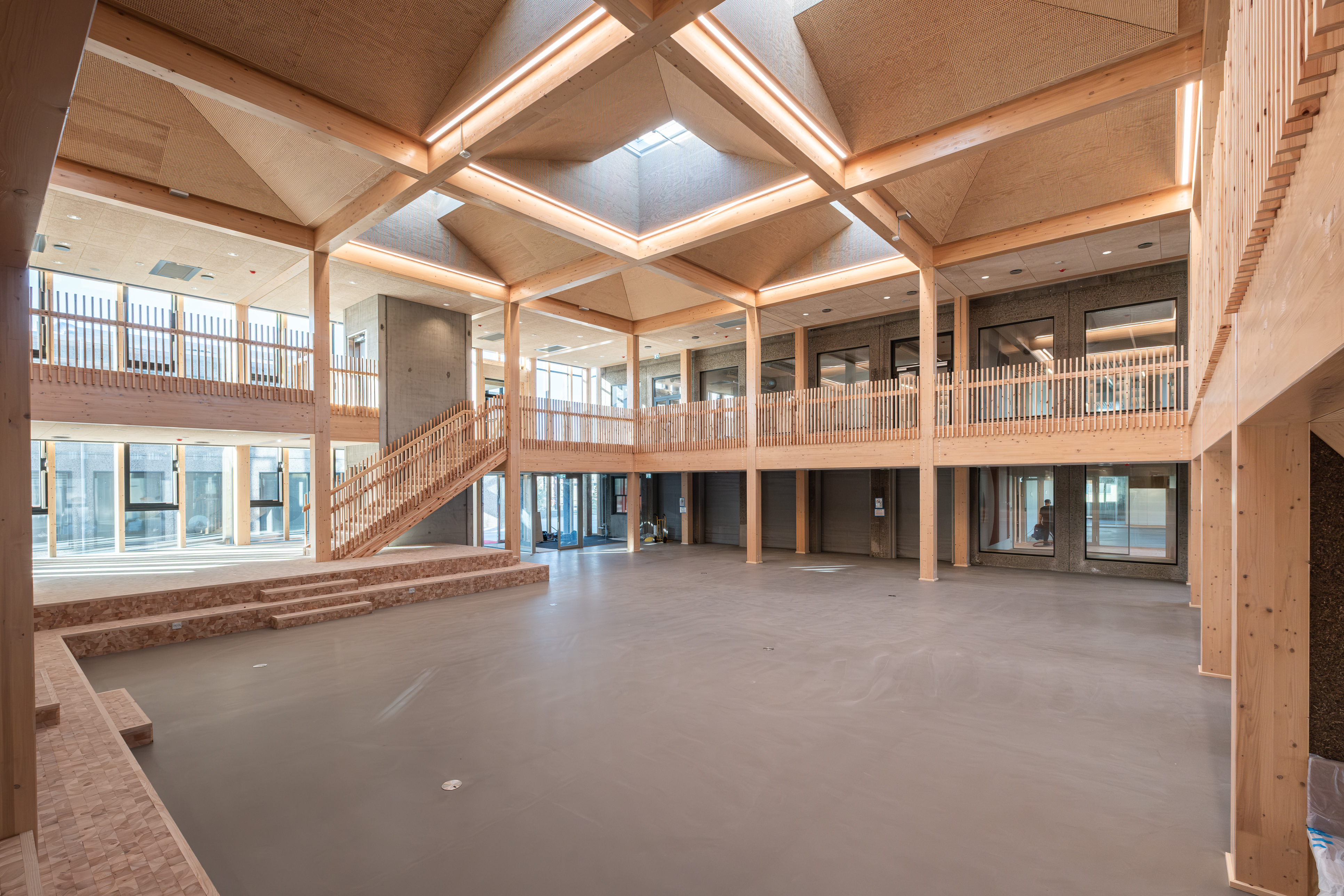 - Vi er meget glade for resultatet af bygningsfornyelsen, som passer smukt ind i et vores campuslandskab. Der er skabt en større sammenhæng på tværs af campus med nye mødesteder og forbindelser mellem bygningerne. Vi ser frem til at kunne tilbyde et lyst og åbent miljø for både studerende og medarbejdere i de klassiske betonrammer. Og her er det vigtigt for os, at projektet har et tydeligt bæredygtighedsperspektiv, siger Hanne Leth Andersen, rektor på Roskilde Universitet.